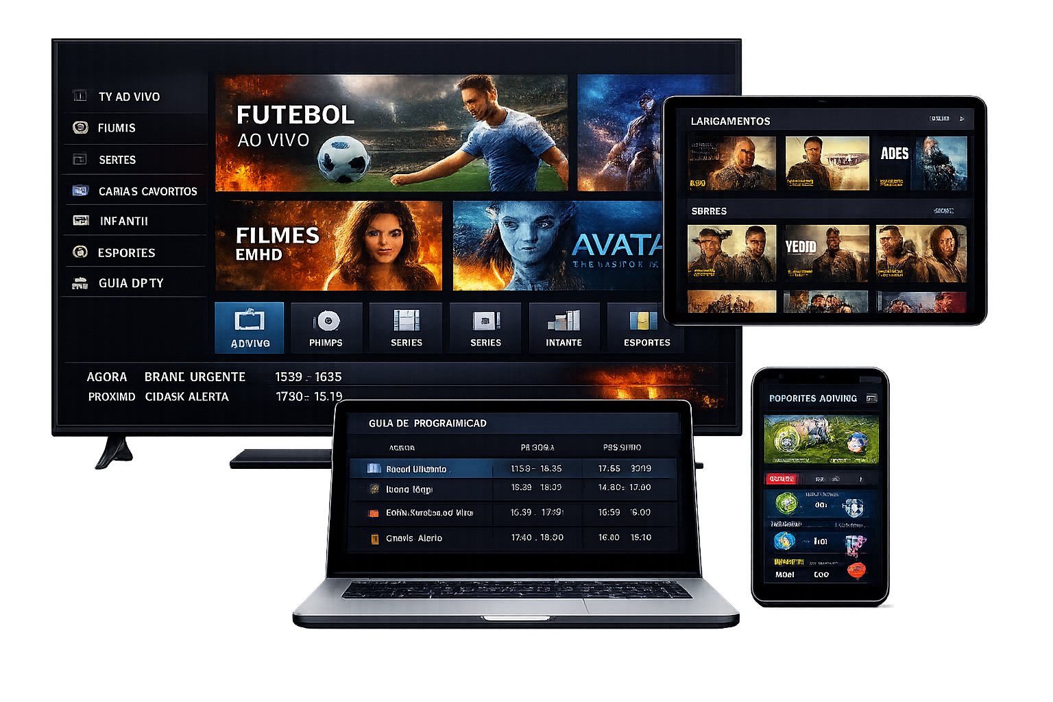 IPTV (Internet Protocol Television) é a tecnologia que permite assistir TV e streaming pela internet, sem antenas ou cabos tradicionais.